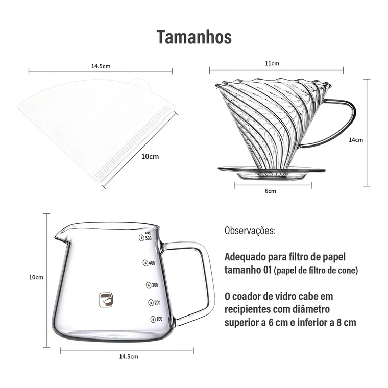 Conjunto Coador de Café V60 + 50pcs V01 Filtro de Café